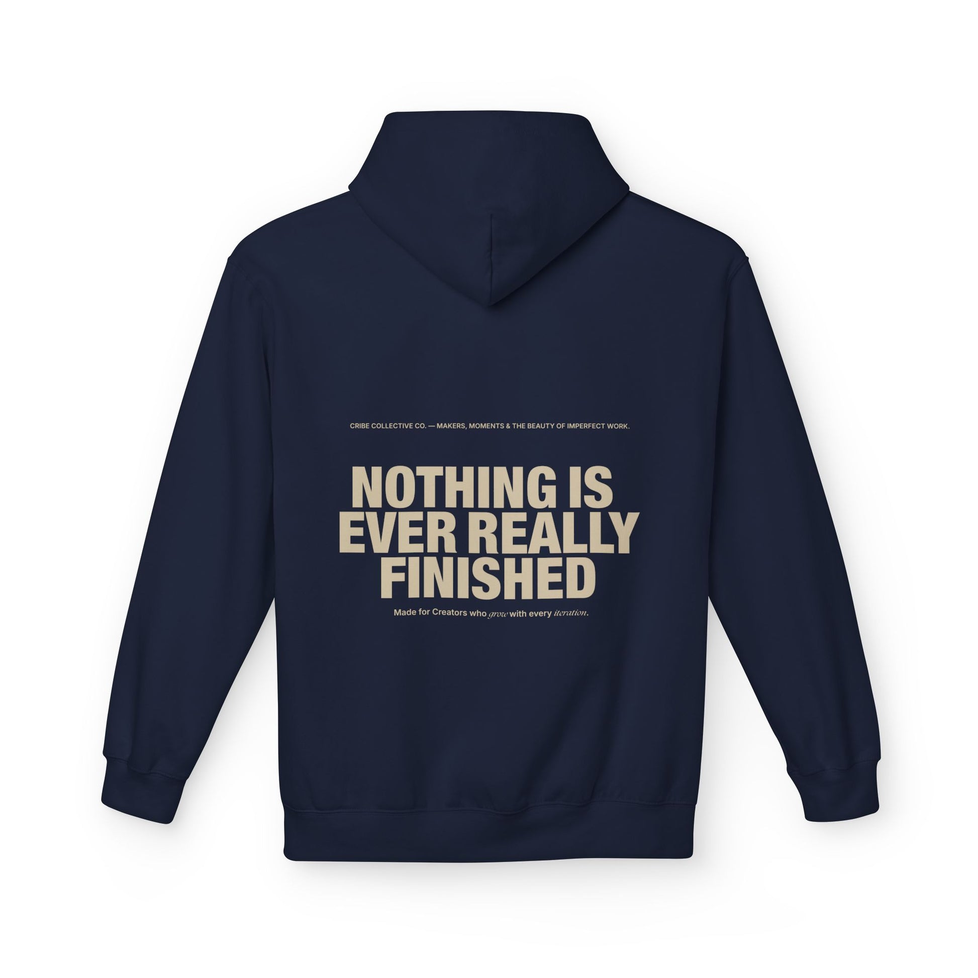 This midweight fleece hoodie feels like a quiet, steady companion — warm without weight, familiar without fuss. The deep, earthy tone and understated chest patch settle into the background while the bold, reflective statement on the back makes room for thought. Slip it on after a long studio session, on a foggy morning walk, or when you want comfort that reads intentional. The dropped shoulders and roomy pouch pocket encourage slow movement and practical use. It’s made with responsibly sourced fabrics and produced in socially conscious mills, so the warmth you feel is paired with care for people and planet.
